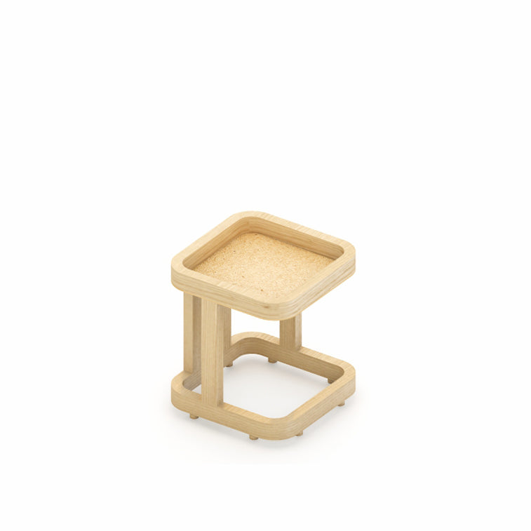 Mesita artesanal de dimensiones compactas. Fabricada con madera de abeto nacional, su estructura curva, lograda mediante la técnica de doblado de madera, ofrece un toque distintivo y moderno. Sus líneas simples y geometría sencilla la convierten en un accesorio versátil, perfecto como mesita de noche, mesita baja en la sala de estar o mesita auxiliar en cualquier rincón de la casa, añadiendo elegancia y practicidad.